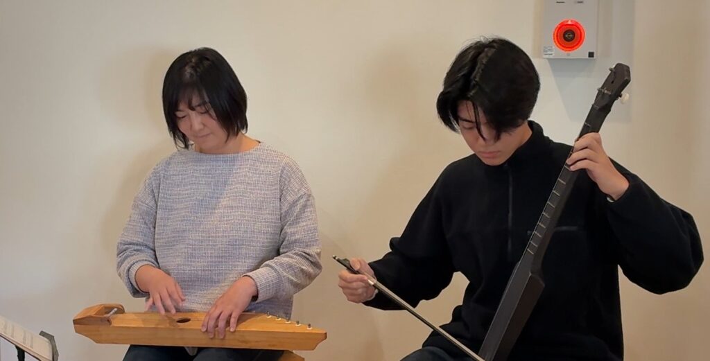 音楽ライブ: 「奥河内三弦(おくかわちさんげん)-オッカサン-」の澄んだ美しい音色がラボに響きわたりました🎵